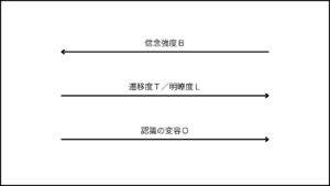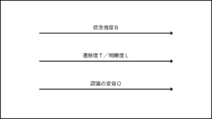 次の図は、遷移度/明瞭度の機構に、信念という要素を加えたものである。