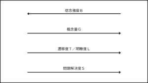 第一の線は、信念強度Bを表す。信念の強固さや抵抗の強さとも呼べるだろう。